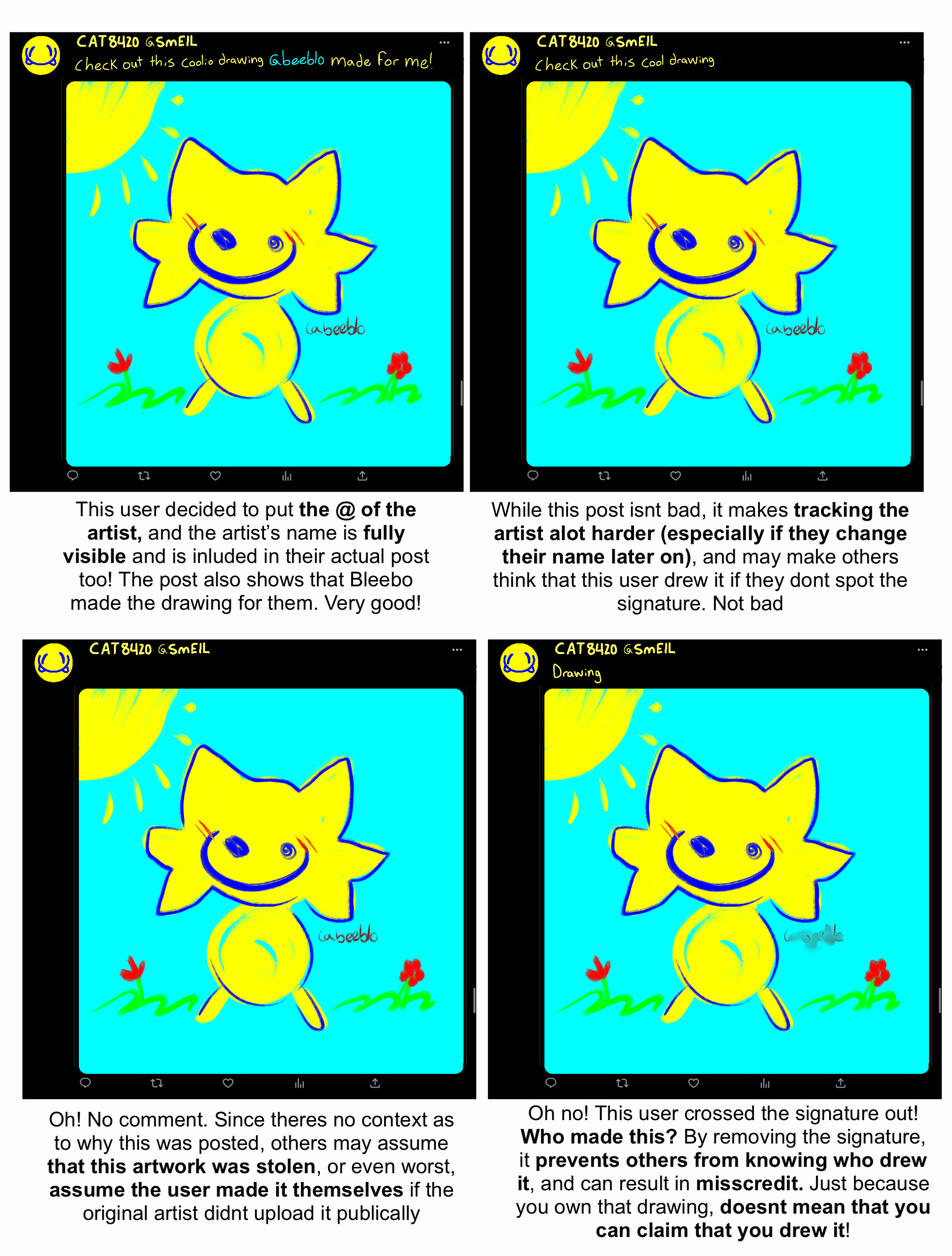 If youre aiming on posting a commission someone did for you, its important to credit the artist so the people who come across it are aware of who drew it. If not, people might assume that you either drew it, or stole it from the artist!Heres some visual tips on how where exactly to put those credits when needed!